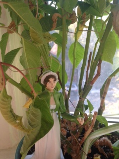 Lol. She blended in really well with that house plant. But I must say I think like Elizabeth Bennet she would have not been phased by a muddy skirt. I look forward to future adventures.